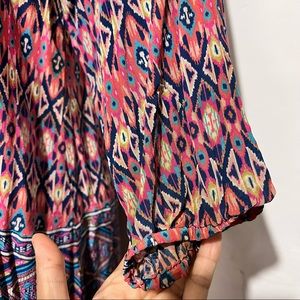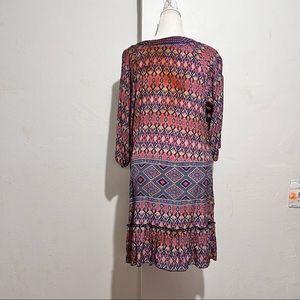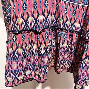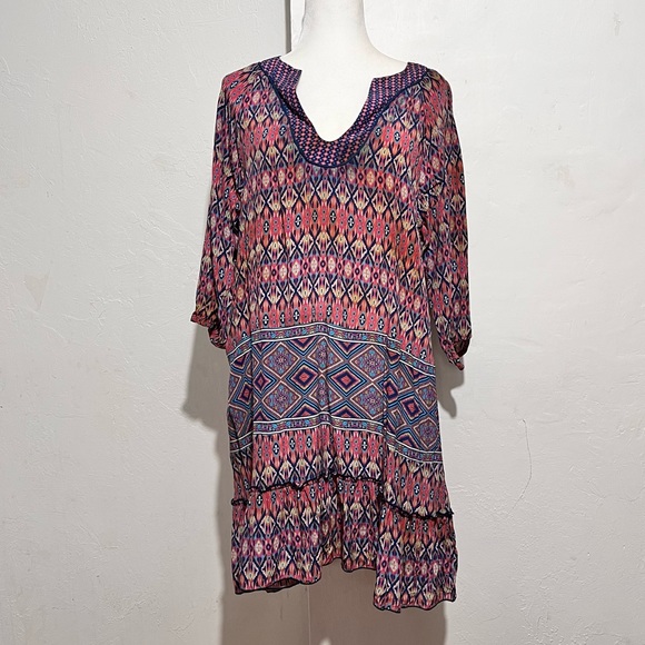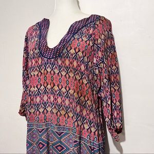 Talon silk tunic top or dress lightweight Aztec print elbow length sleeves can be worn as a dress or cover up