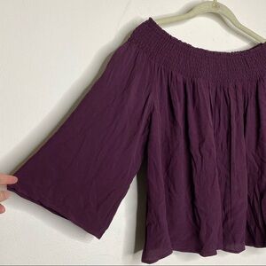 Beautiful flowing off-the-shoulder silhouette. Drapey soft crepe fabric.