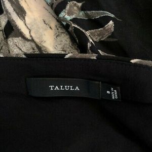 Fit & flare style- fitted on top, flowy on bottom. Spaghetti straps. Side zip closure. Talula sold at Aritzia.