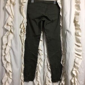 Talula Mid Rise Army Green Moto Style Pants 4 Skinny Zipper Ankles