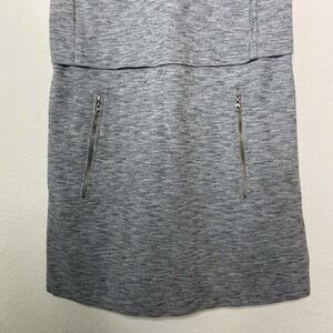 Fun dress by Talula for Aritzia. Gray heathered dress with zipper pockets and back zip closure. Top has a layered looked. Sleeveless. Super versatile! Wear as is or layer over a sweater. Has Stretch. PLEASE NOTE: Color is gray model is for fit example only. All measurements are approximate, taken flat and closed.