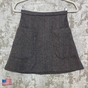 Fabulous skirt from Talula! Features high rise waist, mini length, a-line silhouette, large patch pockets on the front, invisible zipper up the center back, wool blend fabric, and miniature herringbone pattern.