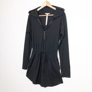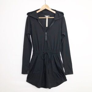 Talulah Black hooded skort hooded romper with drawstring waist, zip front and pockets