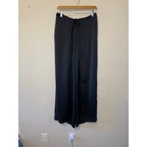 Talulah Boho Silky Black Palazzo Tie Front High Slit Wide Leg Pull On Pants Large