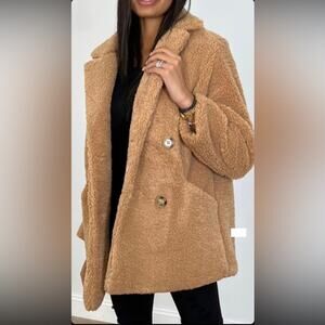 Talulah S/M Tan Camel Max Oversized Teddy Coat Double Breasted Cozy Warm Soft