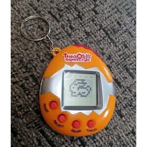 Introducing the Tamagotchi Connection, a fun electronic toy that's sure to delight any fan of interactive gadgets. This particular model is orange and features four buttons for easy play. It comes with batteries included, so you can enjoy it right away.