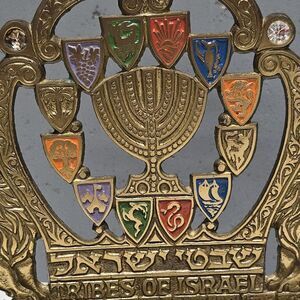 Tamar Tribes of Israel Vintage Judaica Hanukkah Menorah with lions Brass