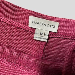 Tamara Catz Trumpet Knit Skirt Medium Burgundy High Rise Knee Length Ruffle Hem.