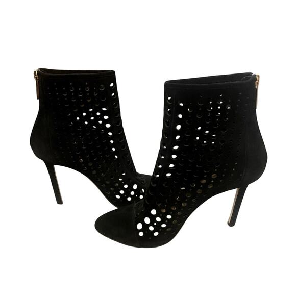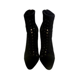 Tamara Mellon 7.5 Laser Cut $895 Italian Suede Ankle Boots Polka Dot Black