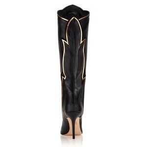 Tamara Mellon Black Gold Leather Nappa Wildfire Boots 90mm Heels 40.5 WORN ONCE