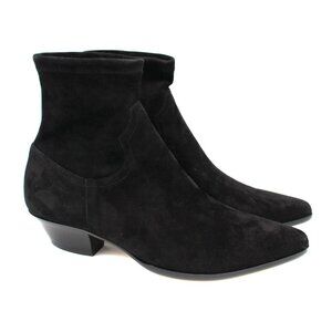 Tamara Mellon Go West Ankle Boots 35 Black Stretch Suede Ankle Bootie 41.5 NEW
