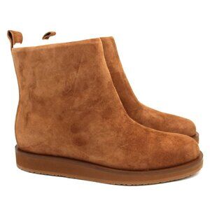 Tamara Mellon Inside Edge 30 Suede Shearling Ankle Bootie Cognac Natural 37 NEW