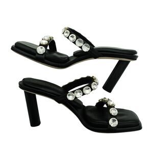 Tamara Mellon Pillow Top Black Crystal Strappy Stiletto Mules - Size 38