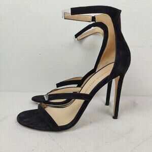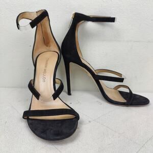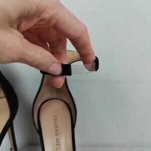 Tamara Mellon Reverse Frontline Heels Womens 38.5 8.5 Black Suede Leather Clear
