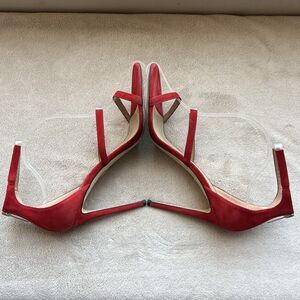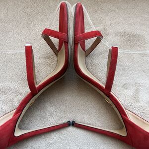 Tamara Mellon Reverse Frontline Red Suede Heeled Sandals Women EU 42 US 10.5