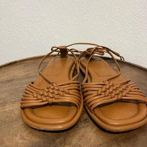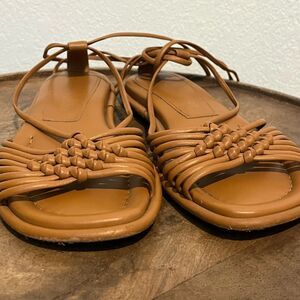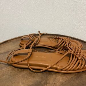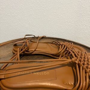 Tamara Mellon Tan Strappy Leather Flat Gladiator Sandals Women's Size 35 US 5