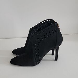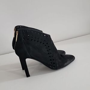 Tamara Melon Black Suede Laser Cut Ankle Booties.