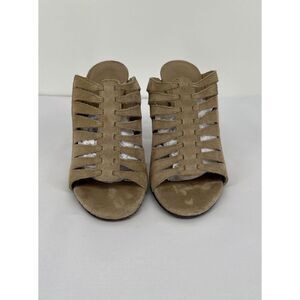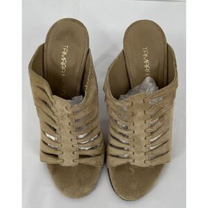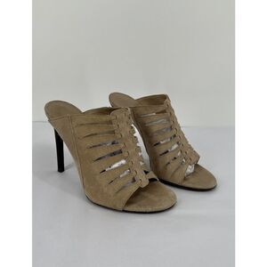 Tamara Mellon Suede Slides Size 36 US 6 Beige Nude Sandal Heels Leather
