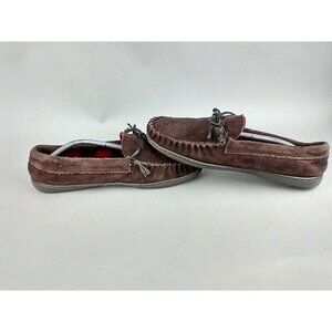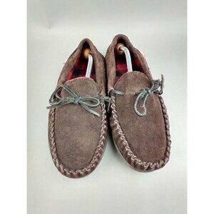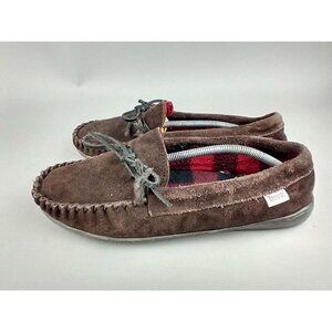 Tamarac Moccasin Slippers Mens Leather Size 11 Buffalo Plaid Flannel Lined Brown