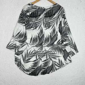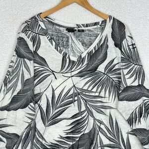 Tamari 100% Linen Palm Leaf Print Top Plus Sz 2X V-Neck 3/4 Sleeve Blouse Resort