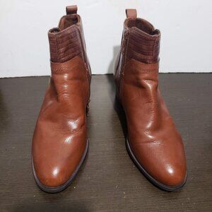 Tamaris Audra Brown Leather Zip ankle Booties Block Heel 39/ 7,5 US