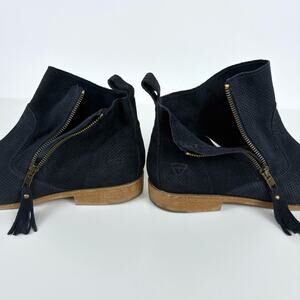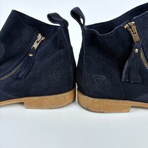 Tamaris Cigarra Blue Suede Leather Ankle Boots Size 39 Minimalist Casual Classic