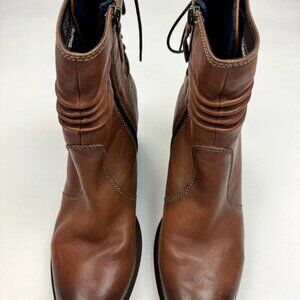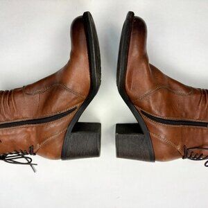 Tamaris Germany Soft Leather Boots Women 41 US 9.5Zip Closure Heel Booties Brown