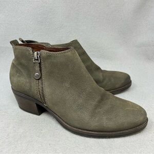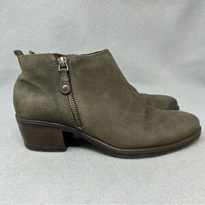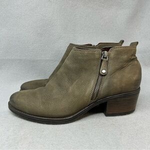Tamaris Greenish Brown Leather Zip Ankle Boots Womens Size EU 38.