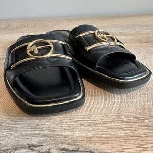 Tamaris Leather Mule slide sandal Black and Gold 37