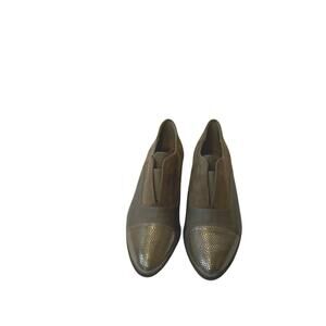 Tamaris Leather & Suede loafer with gold tipped toes, Tan, slip-on sz.39