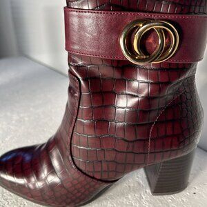 Tamaris SZ 6.5 Crocodile Wine colored ankle boot Modern Ranchland Y2K Retro