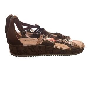 NWT!!!! Women's ankle strap sandals by tamaris. Brown with floral detail. Leather and they have a comfort sole. Womens Size EURO 37 / US 6.5