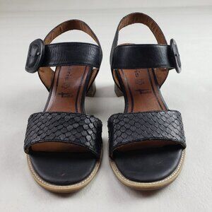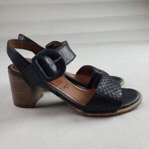 Tamaris Slingback Heeled Leather Sandal Womens 7.5 39 Black Leather Open Toe