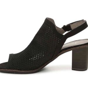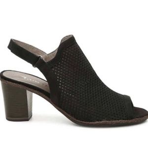 Tamaris Womens Wortmann Peeptoe Sandals Size 5.5 Slingback Heel Black EUR 36