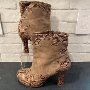 Tamaris sz 40 US 9.5-10 tan snakeprint faux leather heeled booties