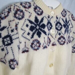 Tami Fair Isle Wool Knit Cardigan Sweater Button Up Snowflakes Small Vintage