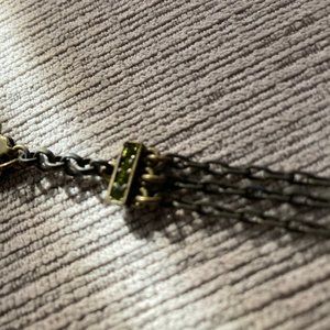 Selling this Swarovski and chain choker. The charm has green crystals surrounding purple crystals. There are cute details of green crystals near the clasp and on the clasp. Length is 16 inches from end to end.