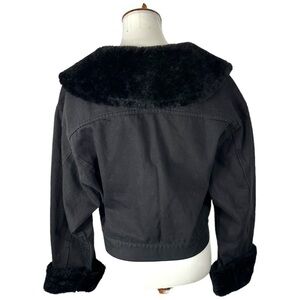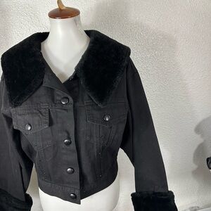 Tamorak Marie Black Denim Faux Fur Collar & Cuff Penny Lane Jacket Size Medium