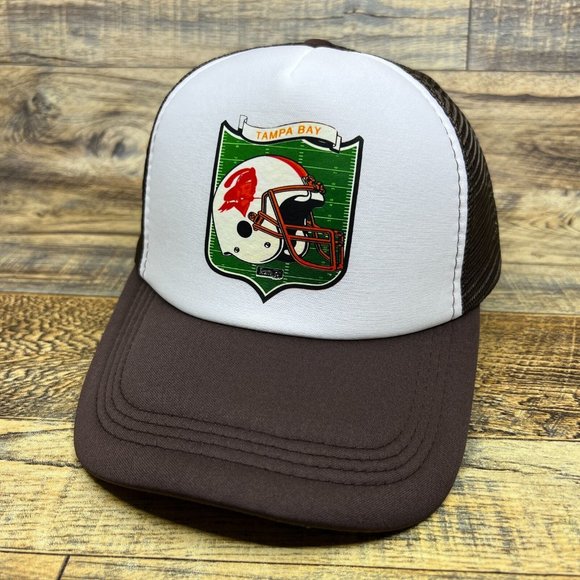 Tampa Bay Buccaneers Mens Trucker Hat Brown Snapback Vintage Logo Football Cap