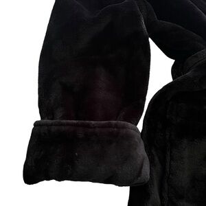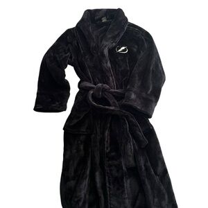 Tampa Bay Lightning Fleece Shawl Collar Robe. One Size. Black robe with matching belt. White embroidered logo to left chest. 2 front pockets. Sleeves approximately 23" with roll up cuffs. Robe length 48" (shoulder to bottom hem). Super soft and comfortable fabric. 100% microfiber polyester. Machine washable. Good condition. Like new.