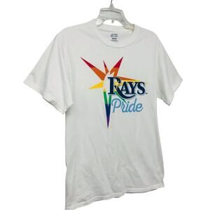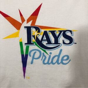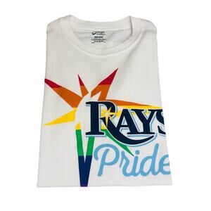 Tampa Bay Rays Pride White Short Sleeve T Shirt Starburst Rainbow Logo