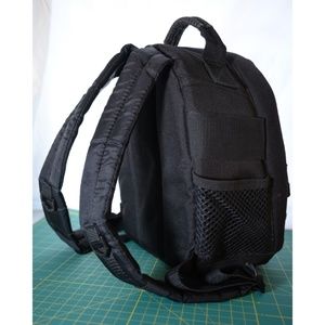 Tamrac camera backpack/bag. 11.5 x 9 in. Large enough for DLSR or mirrorless camera and multiple lenses or flash and accessories. Padded shoulder straps make this a great bag for hiking or carrying all day. Padded velcro dividers keep equipment in place. Front pocket has dividers for SD cards, cables, etc. Used, excellent condition, small scuffing on exterior.