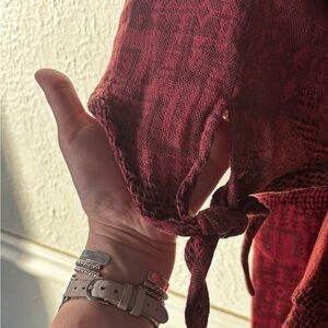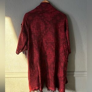 Add a boho touch to your wardrobe with this Tamsy cotton open-front cardigan. Featuring a lightweight, flowy design with ruffle details, tie accents, and a subtle Southwest-inspired pattern, this versatile cover-up is perfect for layering. Looks especially cute styled with turquoise accessories! Ideal for casual outings or as a stylish beach cover-up.