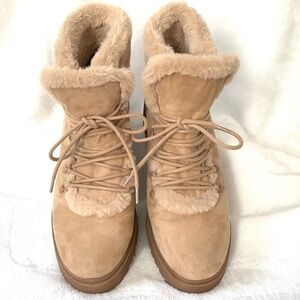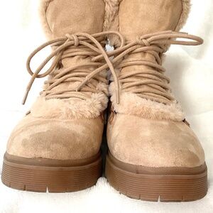 TAN A NEW DAY BETSY FAUX FUR LINED WINTER PULL ON ANKLE SNOW BOOTS SIZE 8.5