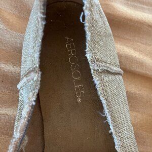 These are a Woman's pair of tan glittery slip-on shoes by Aerosoles.