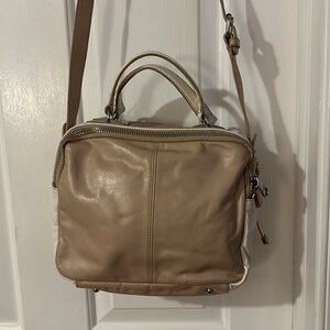 Tan And Cream Medium Badgley Mischka Three Zipper Purse With Handles And Strap