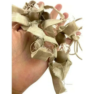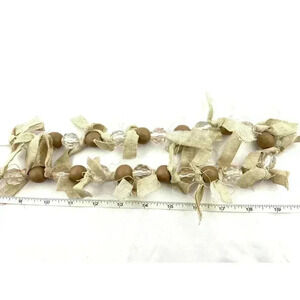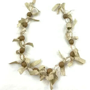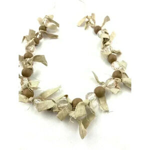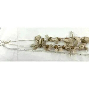 Tan Art Deco Natural Wood Bead Faceted Necklace Adjustable Cord 38"
