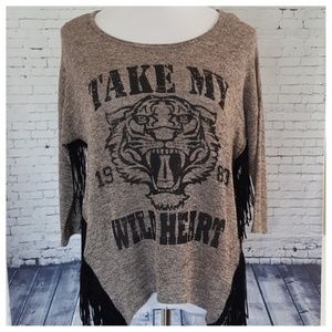 Tan Black Fringe Take My Wild Heart Graphic Tiger Print Slub Top Vintage Style