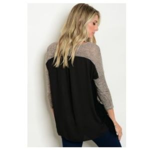 High low hemline, 3/4 sleeve, scoop neck, loose oversized fit