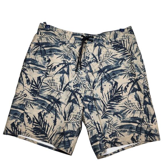 Tan Black Tropical Camo Swim Board Shorts Size 34